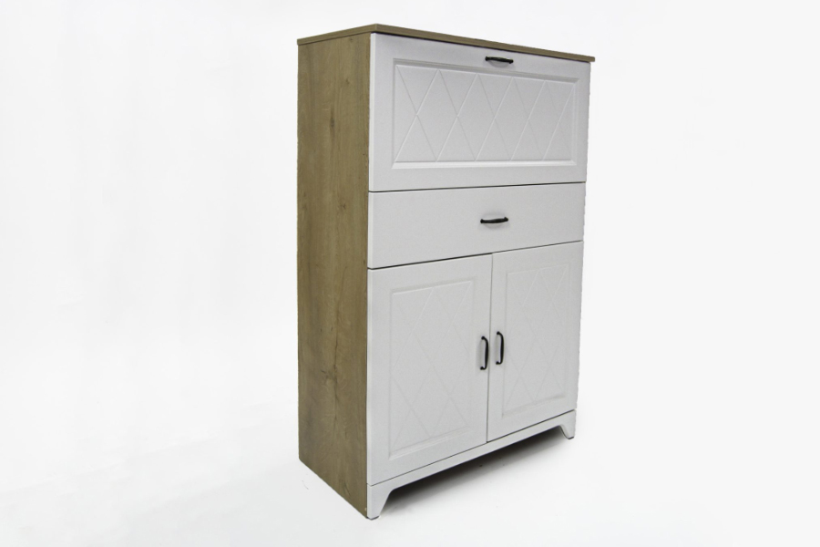- Do produkcji mebli wykorzystano wysokiej jakości płyty meblowe laminowane, płyty MDF oraz stylowe metalowe uchwyty.