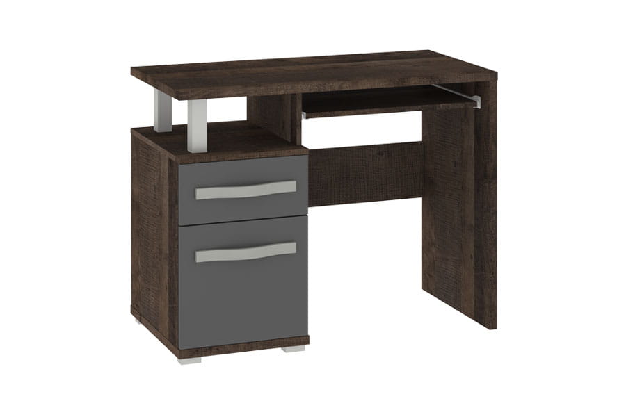 - biurko wyposażone jest w 1-drzwiowy front oraz szufladę. Pod blatem znajduje się praktyczna półka oraz druga wysuwana na klawiaturę.
