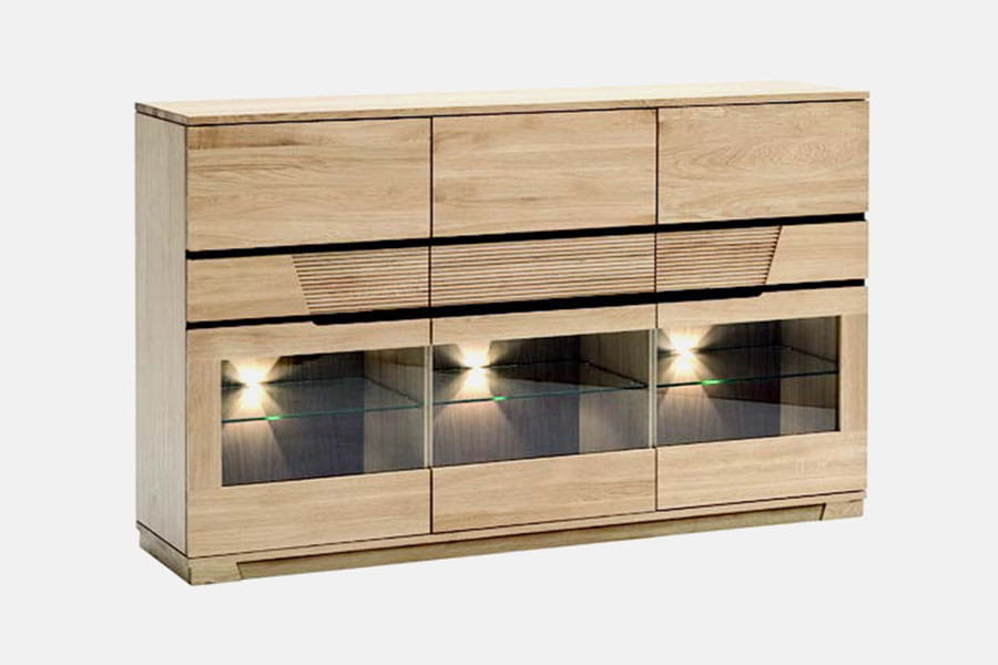 - posiada 3 pełnych drzwi u góry, 3 szuflady oraz 3 fronty szklane. Idealny mebel zarówno do salonu oraz jadalni.