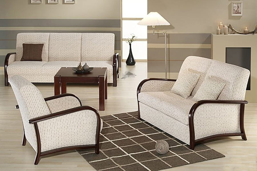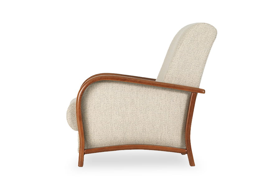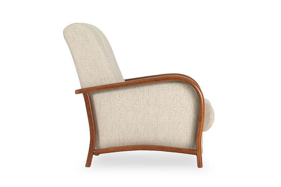Fotel Clasic V doskonale uzupełni wersalkę tworząc udany komplet do pokoju dziennego. Tapicerowane siedzisko i oparcie z dekoracyjnymi pikowaniami posiada drewnianą ramę zamiast tradycyjnych podłokietników wykończonych w tkaninie.
