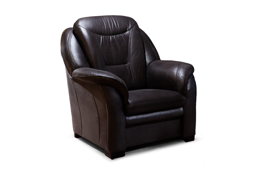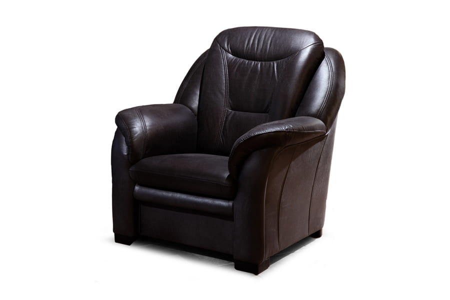 - fotel skórzany posiada wysokie oparcie, miękkie, zaokrąglone podłokietniki