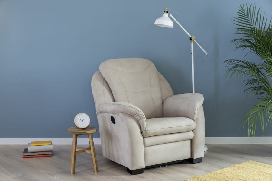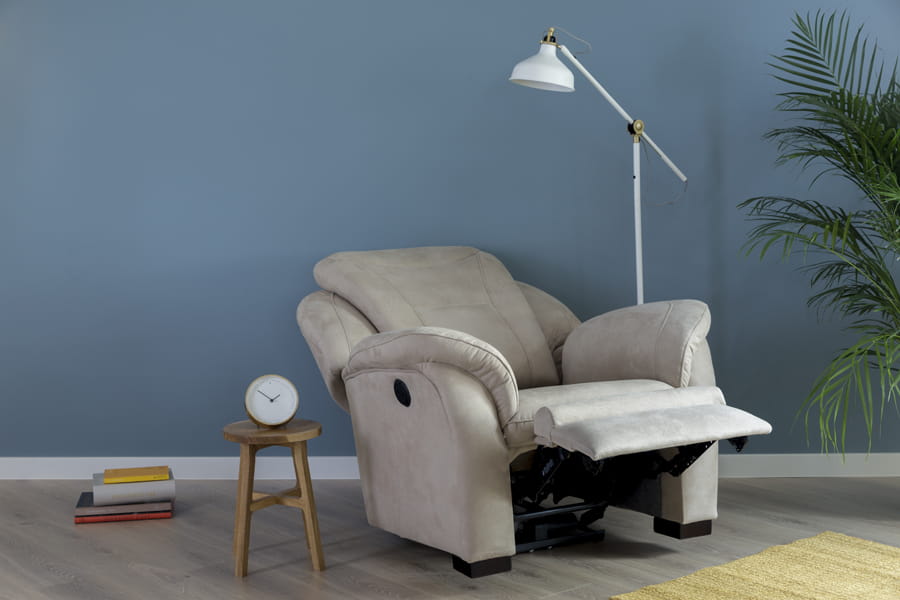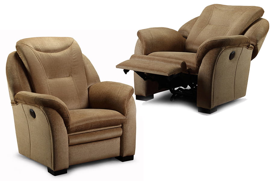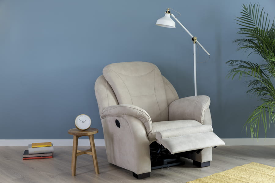 - fotel TV z funkcją relaks elektryczny (mechanizm elektryczny umożliwia płynne uruchomienie funkcji relaks poprzez użycie dwóch przycisków znajdujących się zazwyczaj z boku mebla lub na pilocie. Jeden przycisk służy do do otwierania mechanizmu, a drugi - do zamykania. Funkcja relaks sterowana elektrycznie umożliwia również zatrzymanie podnóżka czy oparcia mebla w dowolnej pozycji. Wystarczy zwolnić przycisk i mechanizm zatrzyma się w najdogodniejszym dla użytkownika momencie.)