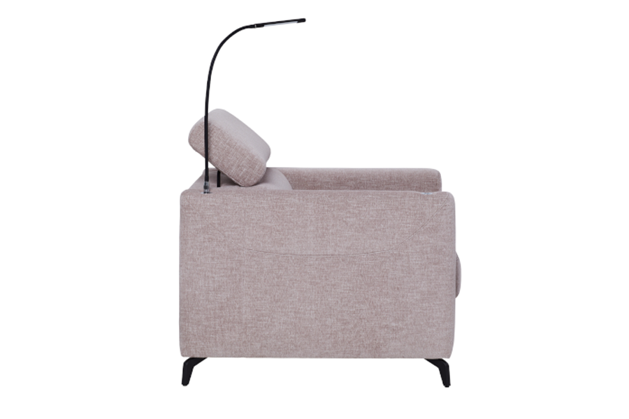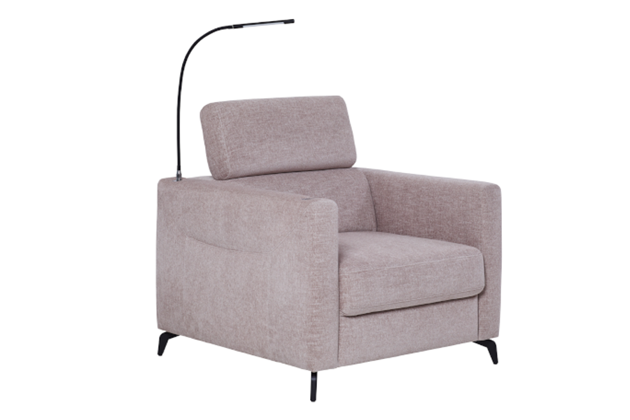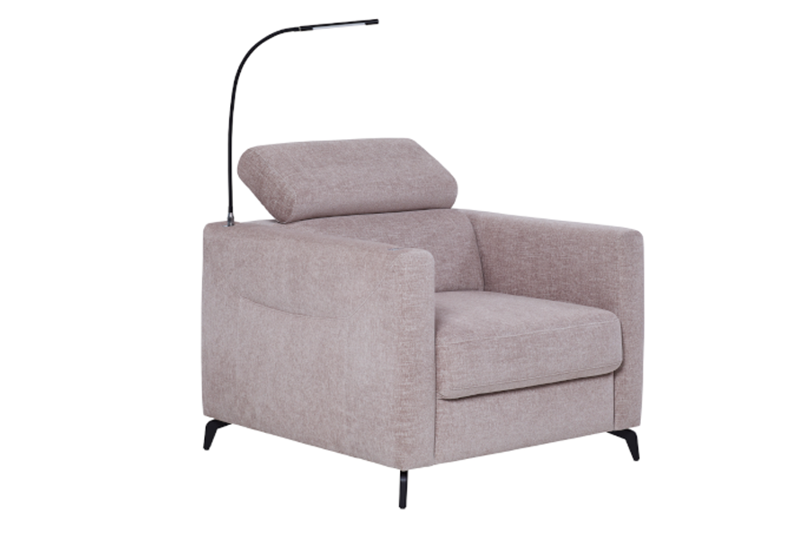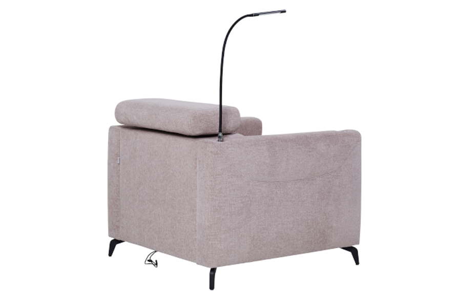 Ten elegancki fotel to idealne miejsce na odpoczynek po długim dniu. Regulowany zagłówek umożliwia indywidualne dopasowanie pozycji głowy i karku, co przekłada się na wyjątkową wygodę podczas czytania, rozmów czy pracy. Obrotowy pulpit z litego drewna dębowego to praktyczny dodatek, który sprawdzi się jako stolik pod książkę lub filiżankę z kawą. Wbudowana lampka zapewnia przyjemne, nastrojowe oświetlenie – doskonałe do wieczornej lektury lub pracy.