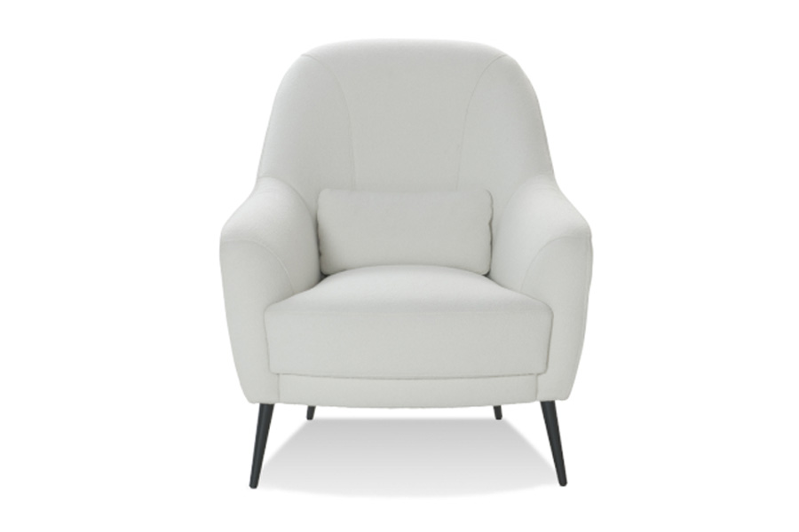 Zgrabny fotel wypoczynkowy. Klasyczna, powszechnie znana forma jest tu nieznacznie zmodernizowana – linia podłokietników unosi się lekko ku tyłowi i płynnie przechodzi w oparcie. Regularność kształtu podkreśla symetryczny rysunek szwów w części wewnętrznej. Do fotela można dostawić dopasowany doń taboret, co pozwoli siedzącemu na wygodne wyprostowanie nóg.