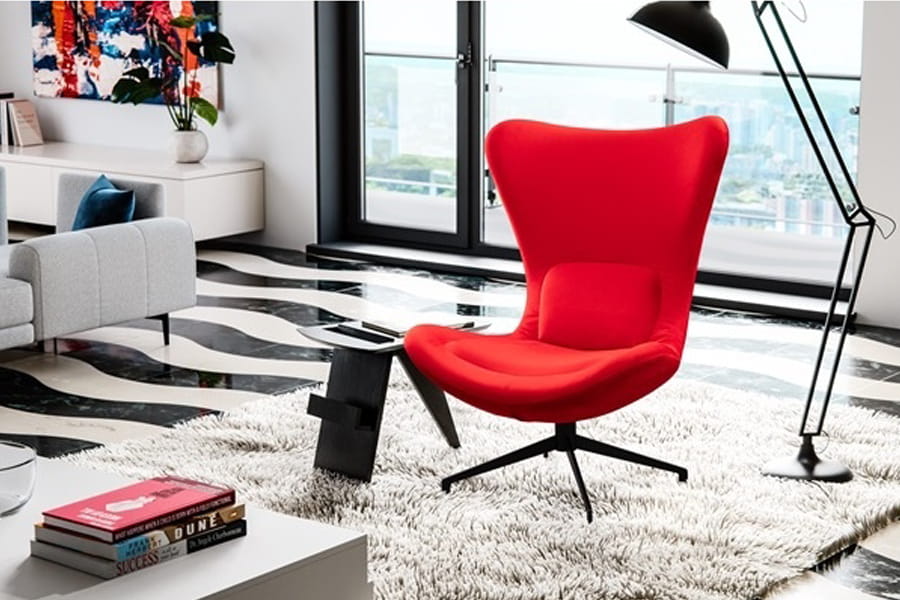 - fotel najlepiej prezentuje się w tkaninach elastycznych