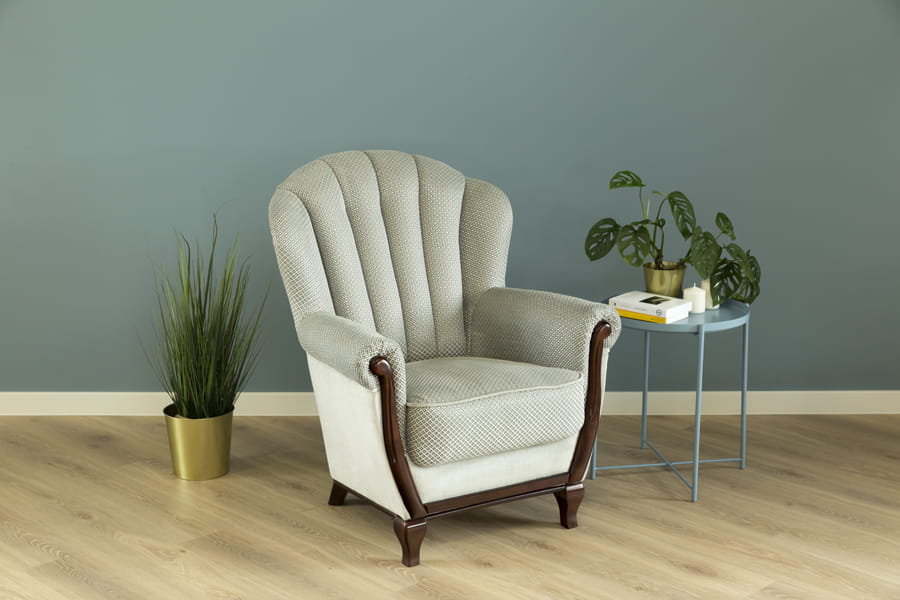 Fotel Sofia to klasyczny model o wysokim oparciu z charakterystycznymi, drewnianymi podłokietnikami. Niewielkie gabaryty umożliwią ustawienie fotela w dowolnym miejscu. Do kompletowania polecamy wersalkę Michael. Kolekcja w której znajdziesz luksus wypoczynku i zaaranżujesz salon tak, by przykuwał uwagę. W kolekcji znajdują się sofy, fotele i pufy - które tworzą idealny zestaw wypoczynkowy.