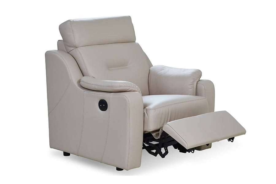 Fotel posiada mechanizm wysuwania siedziska i oparcia sterowany elektrycznie. Fotel dla osób ceniących przede wszystkim wygodę, ponieważ kąt nachylenia oparcia i podnóżka zmieniasz bez konieczności wstawania (przycisk ukryty między siedziskami–wystarczy nacisnąć).