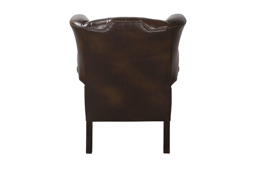 Fotel Chesterfield Queen to kwintesencja elegancji i klasycznej formy. Charakterystyczne, głębokie pikowanie, ozdobne pinezki i delikatnie wyprofilowane podłokietniki podkreślają jego stylowy charakter. Tapicerowany naturalną włoską skórą, oparty na solidnym drewnianym stelażu, łączy w sobie luksusowy wygląd z komfortem codziennego użytku.