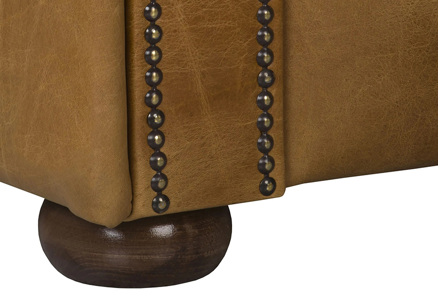 - drewniane nóżki i ozdobne pinezki – klasyczny detal chesterfield