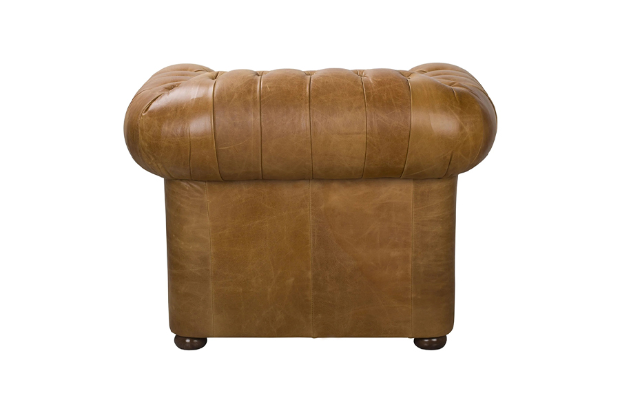 Fotel Manchester to klasyka stylu chesterfield w pełnej krasie. Charakterystyczne, głębokie pikowanie, rolowane podłokietniki i dekoracyjne pinezki nadają mu wyjątkowej elegancji. Tapicerowany naturalną włoską skórą, oparty na solidnym drewnianym stelażu z buku i brzozy oraz osadzony na drewnianych nóżkach, łączy luksusowy wygląd z ponadczasową trwałością. Dostępny w 6 kolorach, idealny do salonu, gabinetu, biblioteki czy eleganckiego biura. Manchester to fotel, który wprowadza do wnętrza wyjątkowy klimat brytyjskiej klasyki. Styl chesterfield od lat kojarzy się z prestiżem, a model Manchester jest jego doskonałą interpretacją – głębokie ręczne pikowanie, szerokie rolowane podłokietniki oraz rząd ozdobnych pinezek tworzą mebel o wyrazistej, eleganckiej sylwetce. Naturalna skóra włoska nie tylko pięknie się prezentuje, ale z czasem nabiera szlachetnej patyny, podkreślając unikalny charakter mebla. Każdy fotel Manchester powstaje w procesie handmade – od drewnianej konstrukcji po wykończenia. Stelaż z drewna bukowego i brzozowego zapewnia trwałość i stabilność, a drewniane nóżki nadają całości lekkości i subtelnej elegancji. Manchester dostępny jest w sześciu kolorach, dzięki czemu z łatwością dopasujesz go zarówno do wnętrz klasycznych, jak i bardziej nowoczesnych.