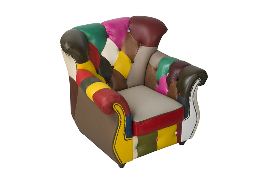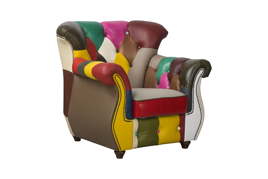 Fotel skórzany wielokolorowy Chesterfield Patchwork Londyn - ROYAL SOFA