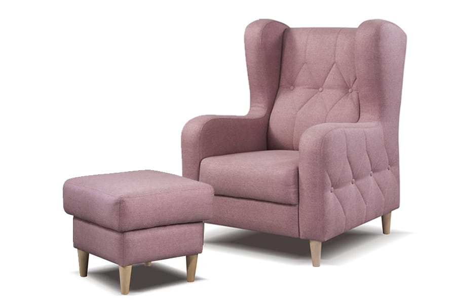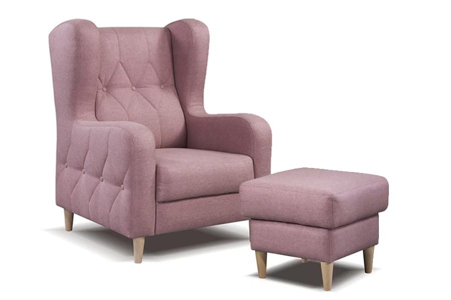 Wyjątkowego design fotela z pufą Prado nawiązuje do mebli w dawnym stylu. Jest oryginalny, niepowtarzalny i z pewnością przyciągnie wzrok. Pasuje do sypialni, salonu, pokoju dziennego. Idealna do aranżacji klasycznych i vintage. Pomoże ci stworzyć wyjątkowe miejsce wypoczynkowe w domu. Fotel jest wygodny, posiada wysokie, pikowane oparcie, które odciąży plecy podczas długiego przesiadywania. Wyprofilowane podłokietniki wyróżniają ją spośród wielu innych foteli. Wygląda stylowo i niebanalnie, co sprawia, że można stworzyć niezwykłą aranżację z nią w roli głównej. Podnóżek jest dodatkowym elementem, który zadba o Twoje nogi po ciężkim dniu. Fotel i pufa Prado wypełnione są elastyczną pianką HR i sprężyną falistą. Dzięki temu meble są komfortowe i wygodne. Oparcie z ozdobnymi guzikami i ciekawie zaprojektowane podłokietniki sprawiają, że wygląda wyjątkowo. Całości dopełniają ozdobne nóżki z drewna w czterech kolorach. Kolor materiału obiciowego zależy od naszych preferencji. Fotel z pufą idealnie zgrywa się z meblami w podobnym, stylizowanym na stary stylu. Świetnie wygląda przy meblach typu toaletka, lustrach w ładnych ramach, stojących lampach z materiałowymi abażurami, firankach i zasłonach w stylu retro.