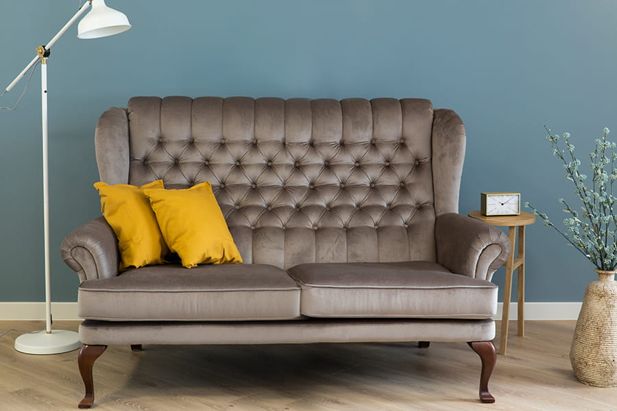 Przepiękna sofa 2-osobowa Bergamo dzięki niezwykle gustownej stylistyce wprowadzi do wnętrza wyjątkowy klimat wersalu. Obszerne siedzisko zakończone wygiętymi podłokietnikami wraz z wysokim oparciem ozdobionym licznymi pikowaniami to gwarancja stylizacji wnętrza, która zachwyci każdego. Unikatowy charakter mebla dodatkowo podkreślają wysokie, drewniane nóżki, których wybarwienie dostępne jest w kilku wersjach