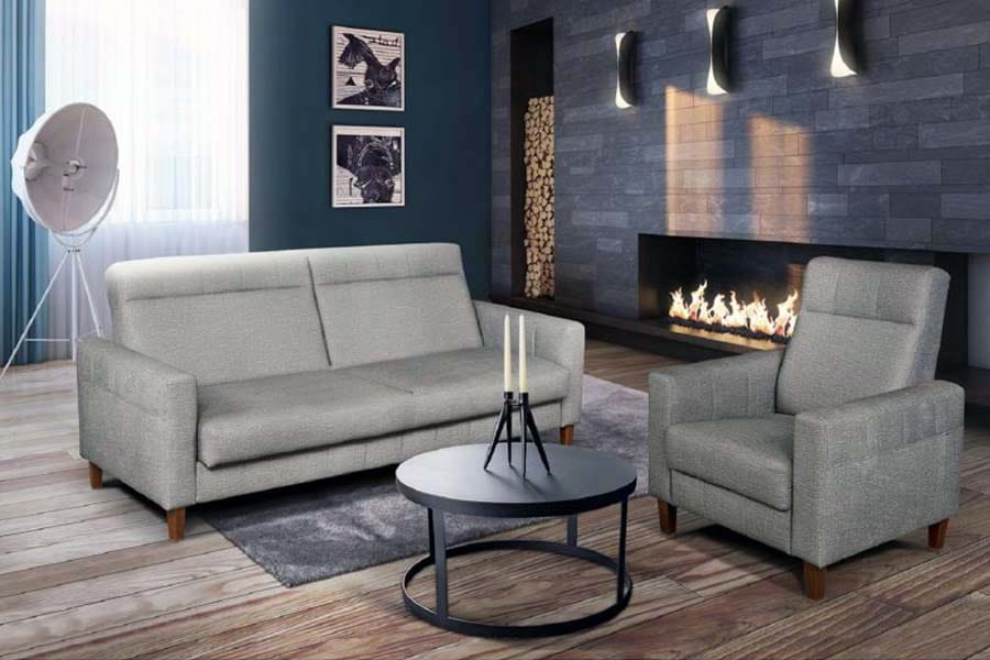 - kanapa z funkcja spania ( praktyczny mechanizm pozwalający na jej rozłożenie pod kątem nocnego wypoczynku )