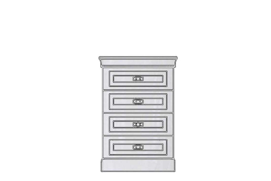 - Klasyczny styl mebli podkreślają ozdobne korony oraz metalowe stylizowane uchwyty.
