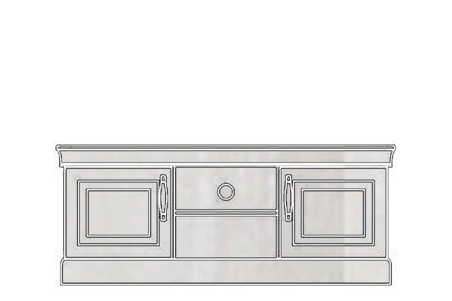 - Komoda RTV składa się z części dwudrzwiowej oraz półki na sprzęt RTV