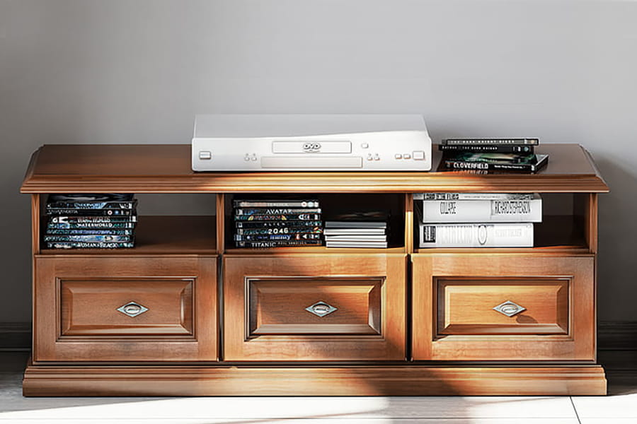 - komoda rtv posiada trzy wnęki na sprzęt oraz trzy pojemnie szuflady