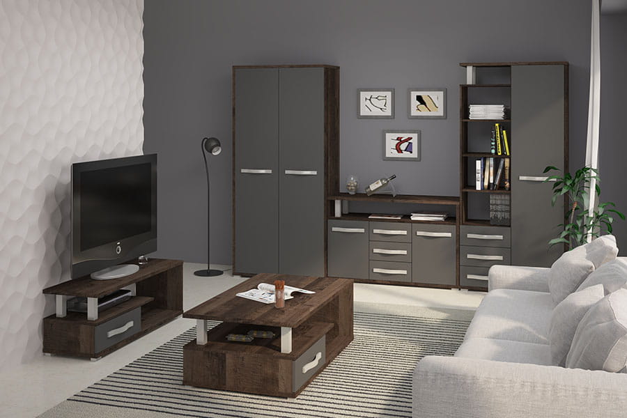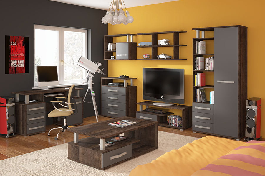 Kolekcja ANGEL to nowoczesne meble przeznaczone do aranżacji pokoju dziennego lub pokoju młodzieżowego. System mebli został wykonany z wysokiej jakości płyty laminowanej. Kolekcja została wykonana w kilku wersjach kolorystycznych do wyboru, dzięki czemu na pewno znajdziemy coś dla siebie. Dzięki użytym do produkcji materiałom mamy pewność, że meble będą nam służyć przez długie lata.
