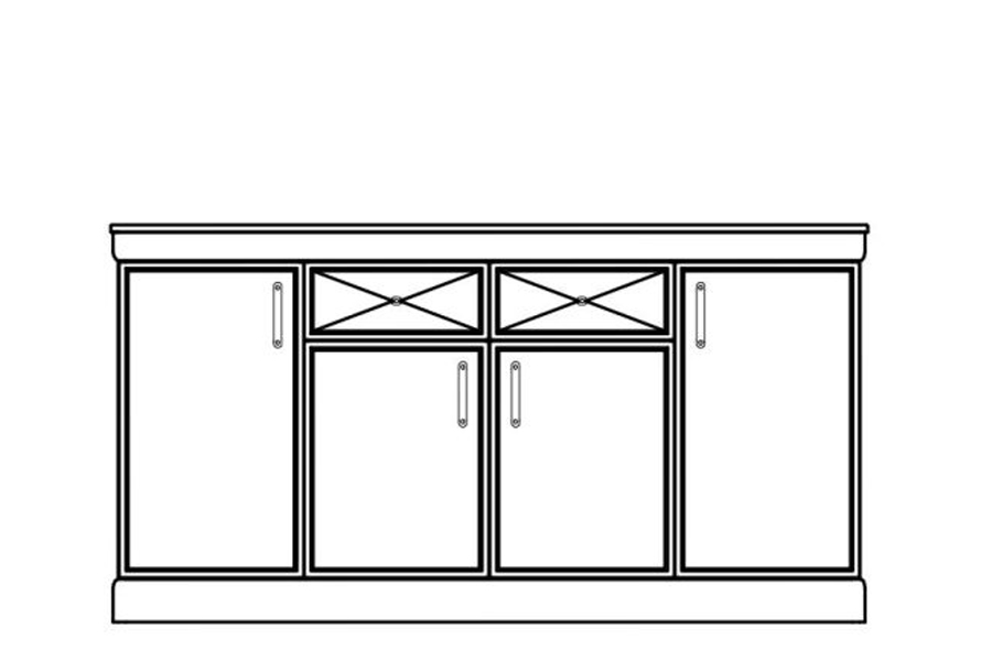 - Komoda składa się z części czterodrzwiowej, czterech półek oraz z dwóch szuflad.