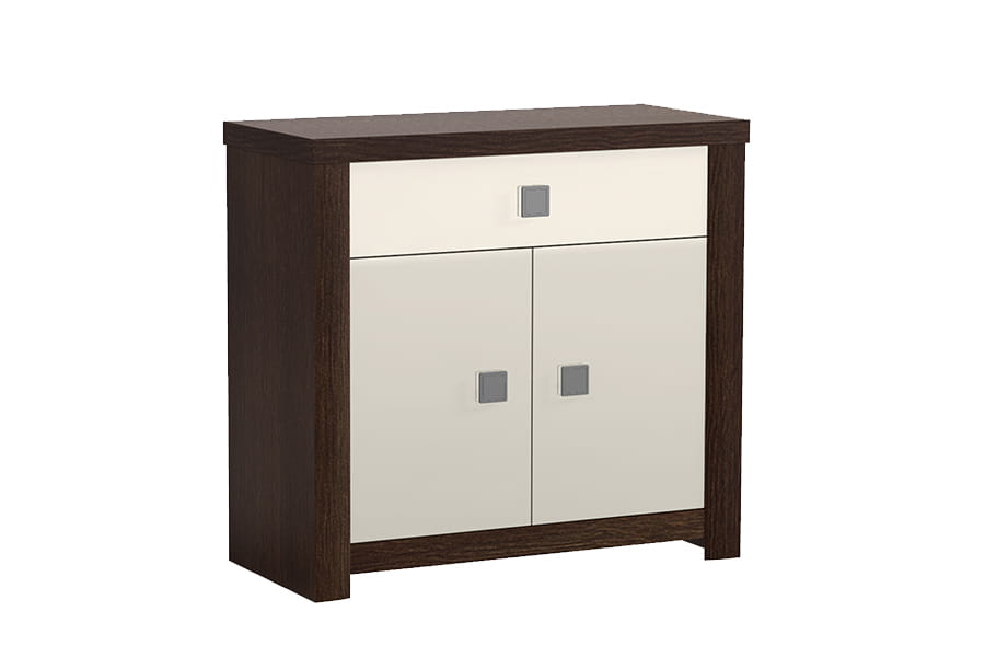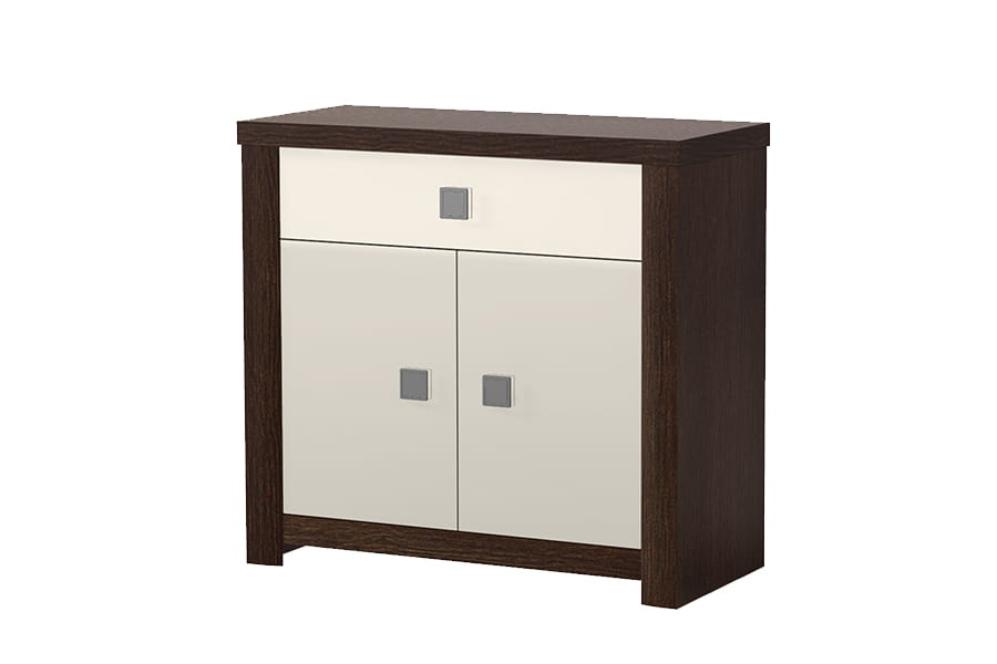 - komoda posiada podwójne drzwiczki, za którymi ukryte zostały szerokie półki oraz pojemna szufladę