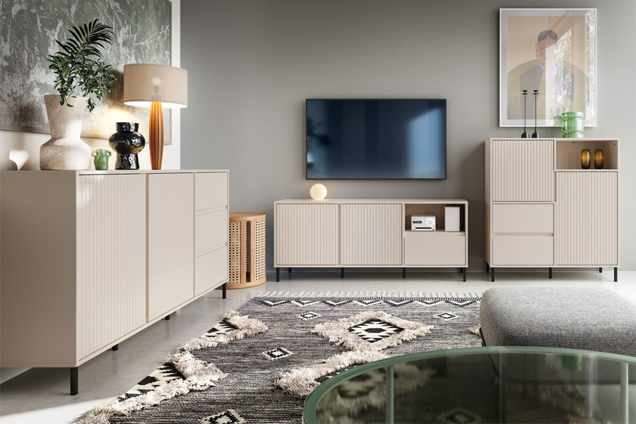 Avenale to kolekcja komód dostępna w trzech starannie dobranych wersjach kolorystycznych – od subtelnych po wyraziste. Przyciąga wzrok pionowymi ryflowaniami, które nadają meblom rytm i wyrazisty charakter, a w połączeniu z gładkimi frontami – także elegancję i nowoczesny wyraz. Pięć funkcjonalnych brył pozwala swobodnie dopasować układ mebli do własnych potrzeb i stylu życia.