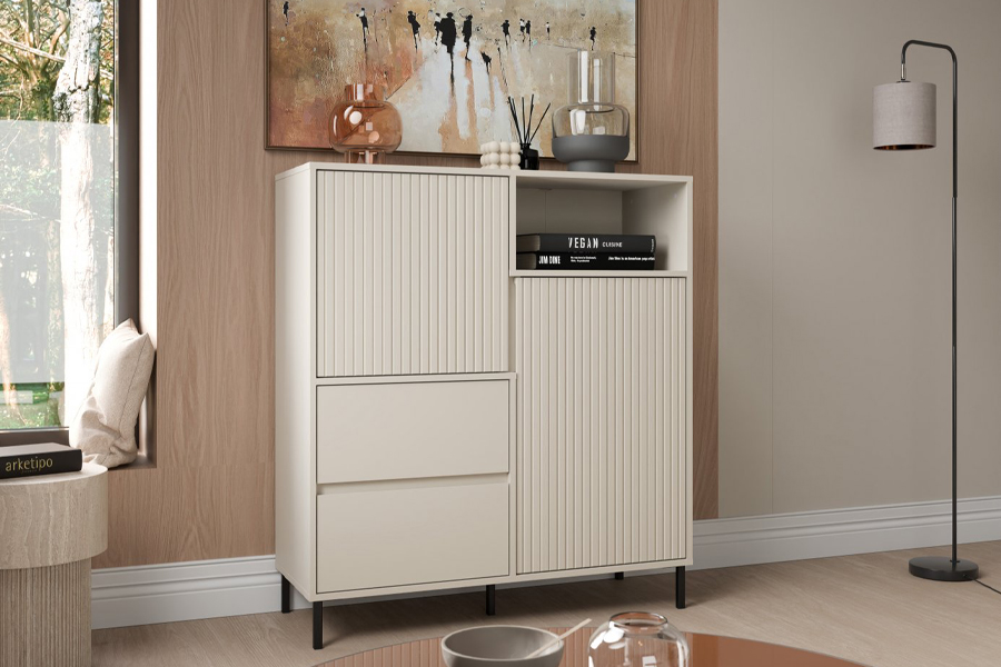 - Model AVENALE AVEK03 w odcieniu cashmere doskonale wpisuje się w potrzeby współczesnych użytkowników – jest pojemny, nowoczesny i uniwersalny. Sprawdzi się zarówno w mieszkaniu urządzanym od podstaw, jak i w roli dodatkowego elementu wyposażenia w już zaaranżowanym wnętrzu. To wybór dla osób, które poszukują praktycznego mebla, a jednocześnie dbają o estetykę i spójność stylu. Komoda łączy prostotę formy z funkcjonalnością, tworząc elegancką przestrzeń do przechowywania na co dzień.