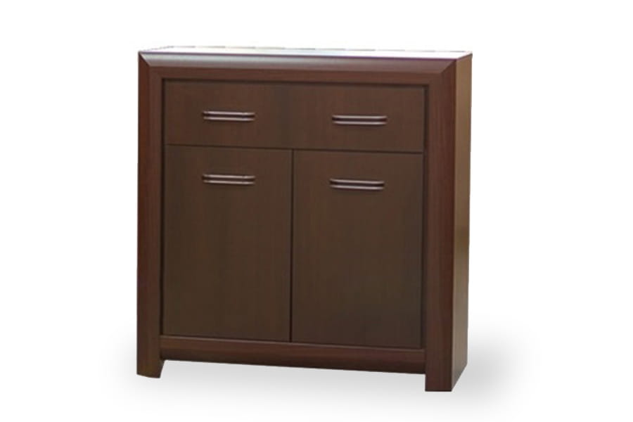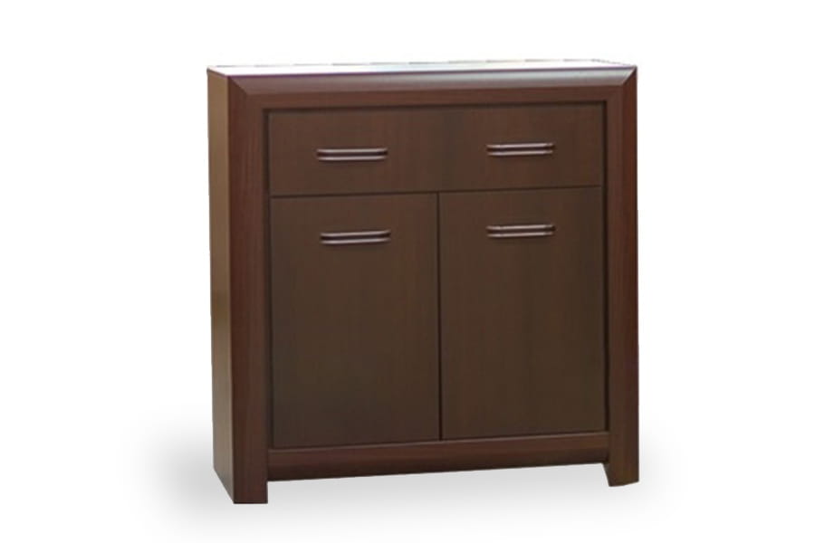 - komoda posiada dwudrzwiowy front z jedną górną szufladą, pozwalając na uporządkowane przechowywanie w jej wnętrzu wielu przedmiotów
