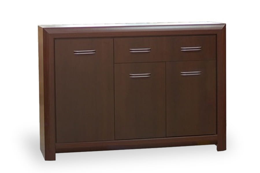 - komoda posiada trzydrzwiowy front z jedną górną szufladą, pozwalając na uporządkowane przechowywanie w jej wnętrzu wielu przedmiotów