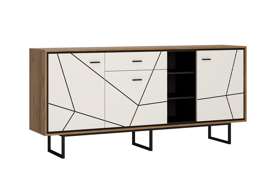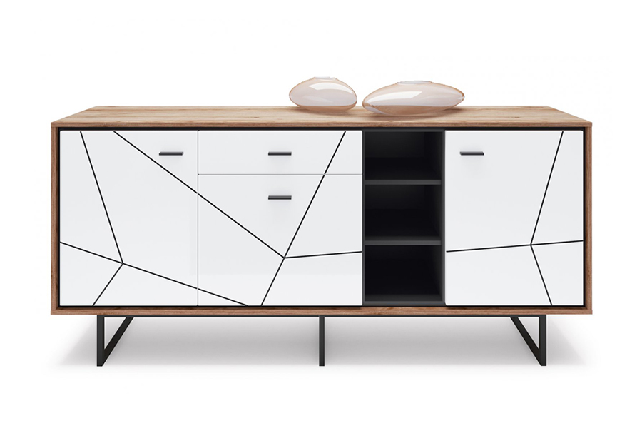 Komoda BROLO 3D-1S - korpus: dąb catania-czarna perła, front: biały połysk