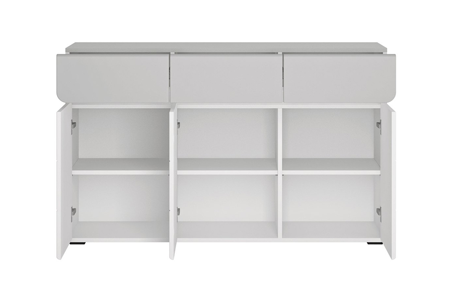 - We wnętrzu mebla mamy do dyspozycji aż trzy szuflady z pełnym wysuwem- bez problemu można wysunąć szufladę do samego końca i bez najmniejszego wysiłku ujrzeć całą jej zawartość.