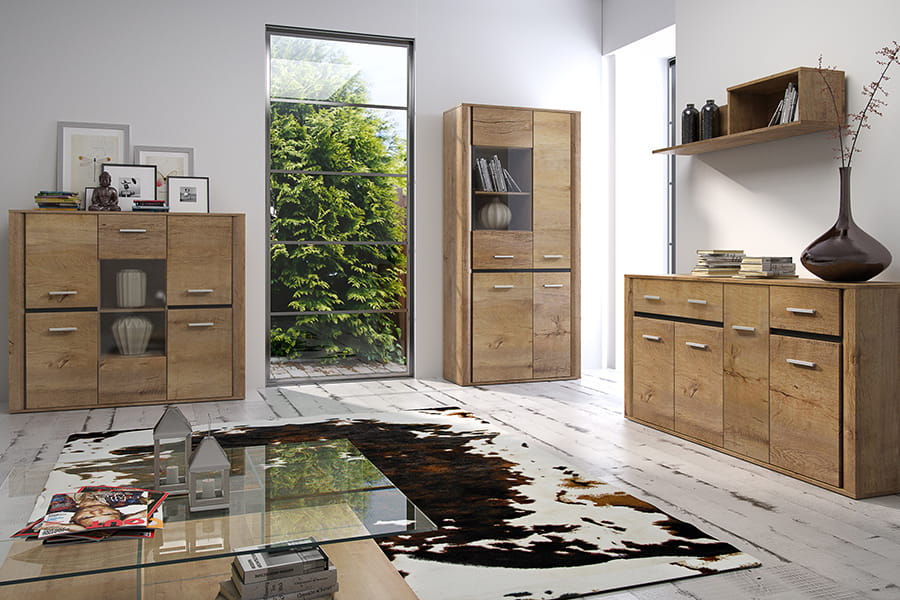 Wyraźne , naturalne usłojenie dębu i delikatna linia przedzielająca poszczególne moduły to cechy dominujące starannie wyważonej kolekcji. System HANA swoją najmocniejsza stronę kryję w praktycznym wnętrzu gdzie rozmieszczone zostały liczne półki. Na uwagę zasługują niesymetryczne witryny ,które będą ciekawym akcentem w uporządkowanym wnętrzu.