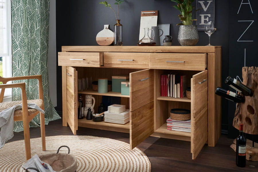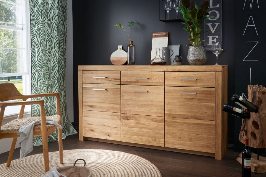 - Proste linie i minimalistyczna stylistka komody otwierają wiele możliwości aranżacyjnych oraz eksponują największe walory litego dębu.