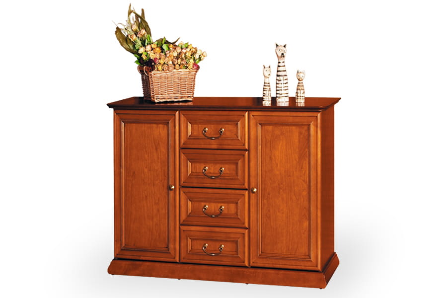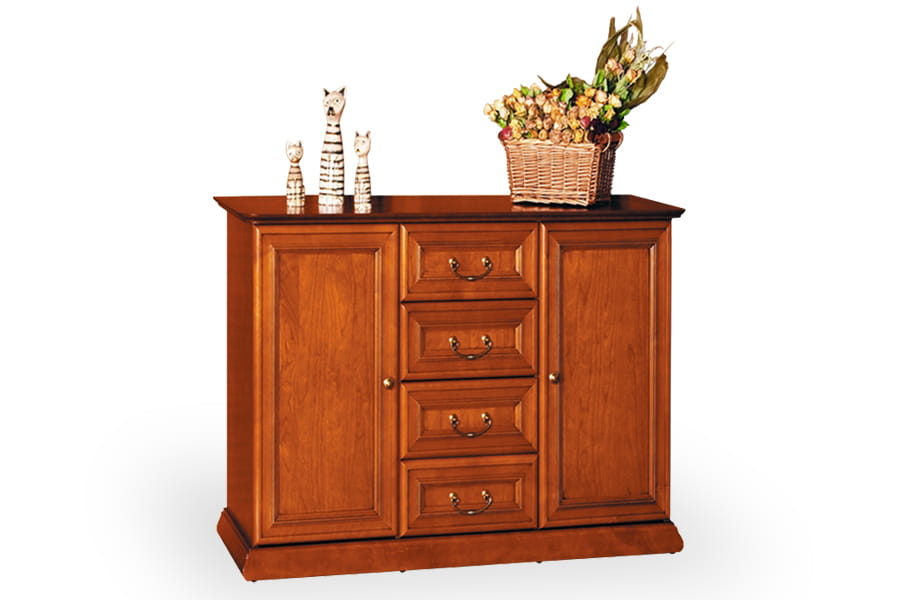 Komoda Jurgen 3SZ producenta Latzke świetnie wkomponuje się w przestronne i elegancko umeblowane wnętrze. Komoda spodoba się tym, którzy szukają mebli eleganckich a przy tym niezwykle solidnych. Cechą dominującą w tym produkcie są typowe dla klasycznego designu ramkowe fronty oraz pięknie wykończone uchwyty. Komoda Jurgen jest również wysoce praktyczna - posiada pojemne szafki na większe przedmioty oraz cztery szuflady do przechowywania drobiazgów. Mebel starannie wykonano z kilku niezwykle trwałych materiałów. Domyślny kolor dla tego produktu to czereśnia złocista.
