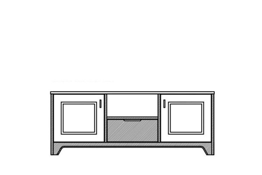 - Komoda RTV składa się części dwudrzwiowej, jednej szuflady oraz wnęki na sprzęt rtv
