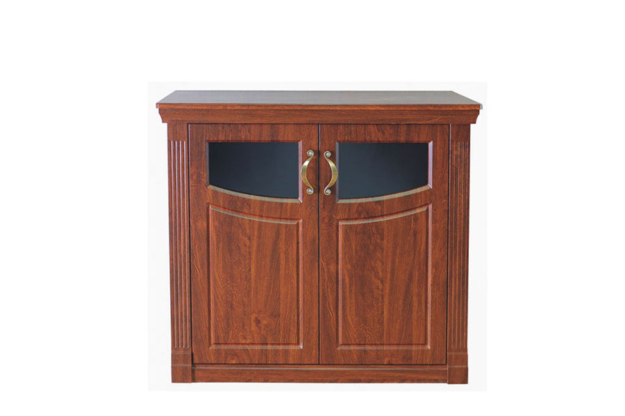 - Komoda składa się z części dwudrzwiowej częściowo przeszklonej. Wewnątrz za drzwiami znajduje się jedna półka