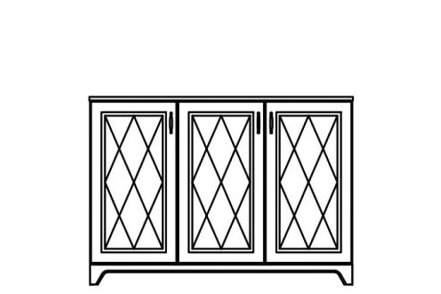 - Komoda składa się z części trzydrzwiowej oraz z trzech półek.