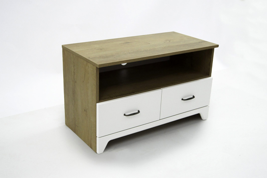 - Komoda rtv składa się z wnęki na sprzęt RTV oraz z dwóch szuflad