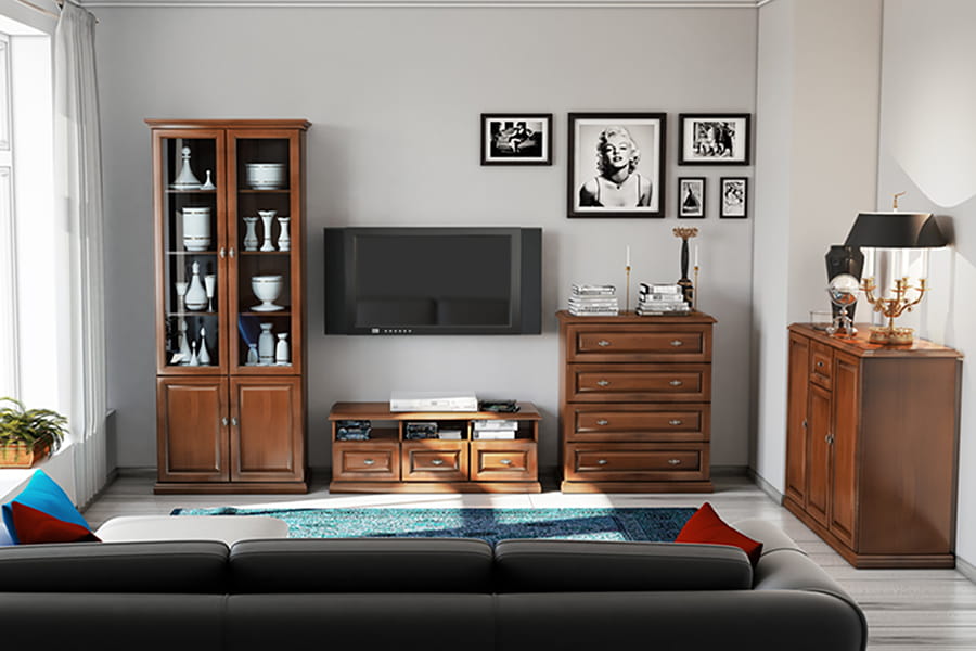 Kolekcja ALBORG to meble eleganckie i ponadczasowe. Kuszą funkcjonalnością zarówno jako samodzielne bryły, jak również zestawione w formie meblościanek. Mebel posiada elementy wykonane z drewna litego (buk lub dąb za dopłatą) takie jak: ramki frontów, cokół i listwy ozdobne doklejone do blatu. Płyciny frontów wykonane zostały z wysokiej jakości płyty MDF i okleinowane zostały naturalnym fornirem. Natomiast korpusy, blaty i półki wykonane zostały z płyty wiórowej, okleinowanej naturalnym fornirem bukowym lub dębowym za dopłatą. Całość jest wykończona bejcą i ręcznie przecieraną patyną. Atutem mebla są zastosowane prowadnice i zawiasy firmy Blum, ze spowalniaczami i z częściowym wysuwem oraz funkcją cichego domykania, zapewniające najwyższy komfort użytkowania.