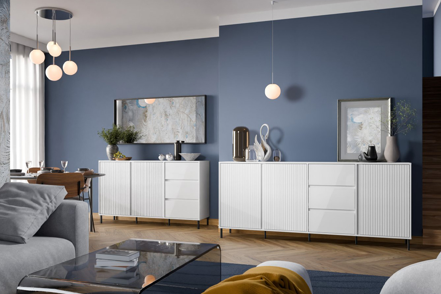 Avenale to kolekcja komód dostępna w trzech starannie dobranych wersjach kolorystycznych – od subtelnych po wyraziste. Przyciąga wzrok pionowymi ryflowaniami, które nadają meblom rytm i wyrazisty charakter, a w połączeniu z gładkimi frontami – także elegancję i nowoczesny wyraz. Pięć funkcjonalnych brył pozwala swobodnie dopasować układ mebli do własnych potrzeb i stylu życia.