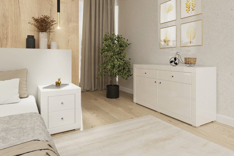Komoda lustrzana białe szkło Duo kolekcja Black&White LKB-2+2
