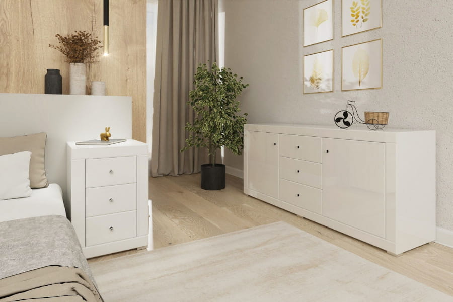 Komoda lustrzana białe szkło kolekcja Black&White LKB-3+2