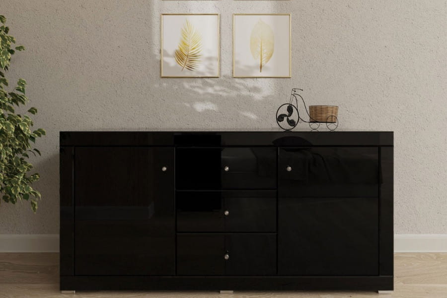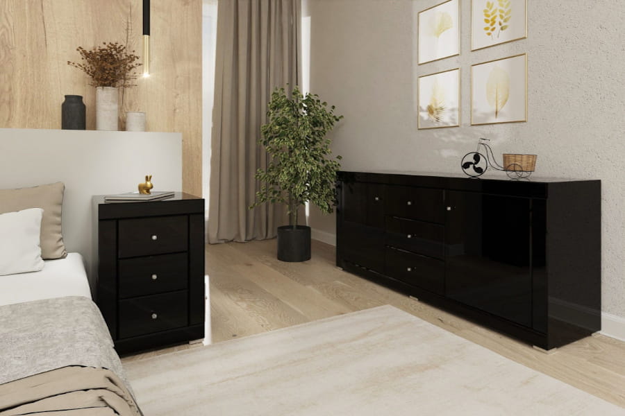 Komoda lustrzana czarne szkło Marsylia kolekcja Black&White LKC-3+2