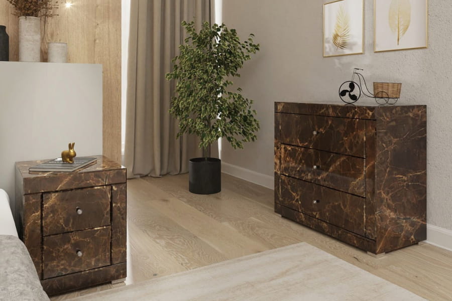 Komoda lustrzana z 3 szufladami LKM-3 Kolekcja Marble ( brązowy marmur )