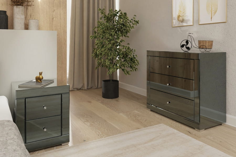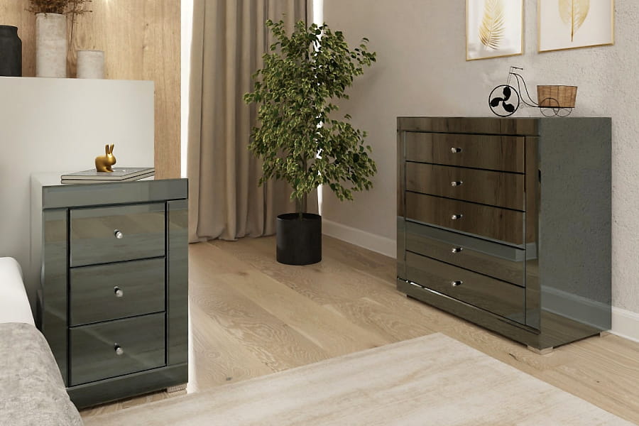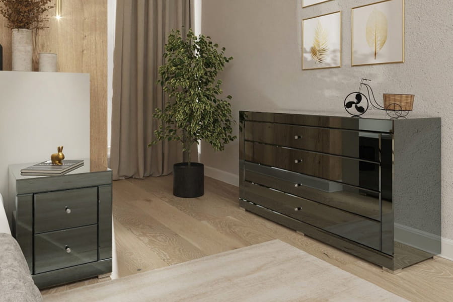 Komoda lustrzana z 4 szufladami Kolekcja Graf&Mirror LKG-4 ( grafitowe szkło )