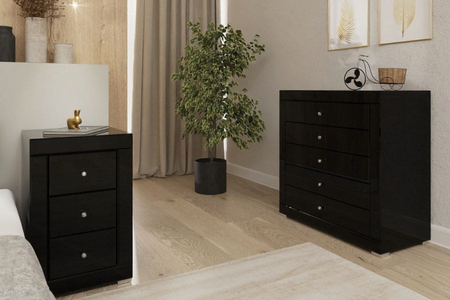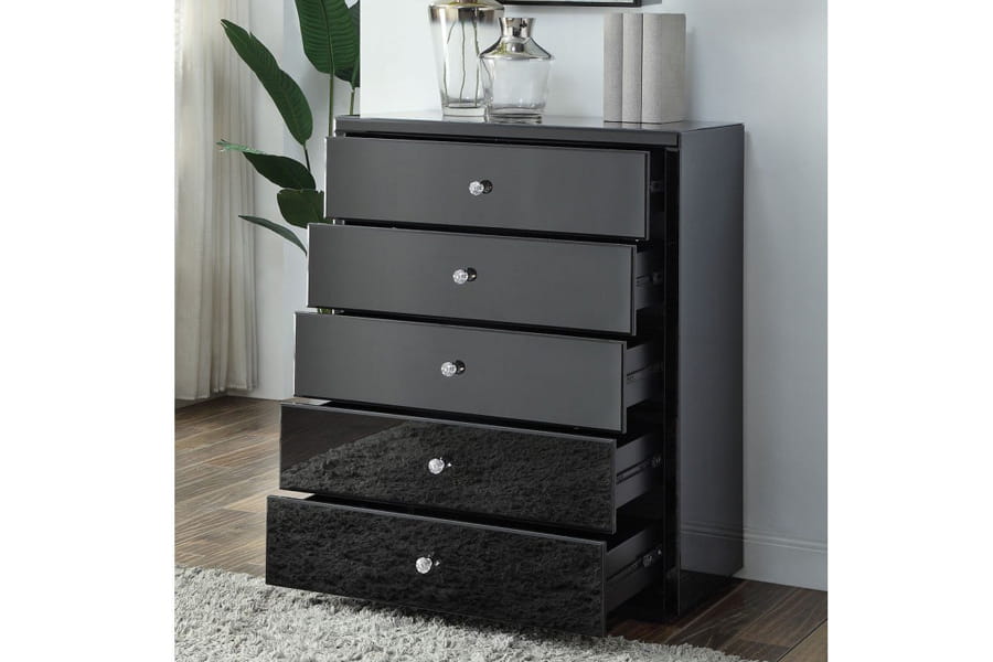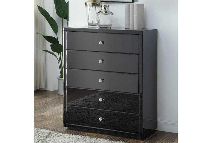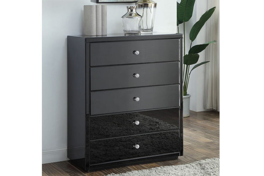 Komoda lustrzana z 5 szufladami KLC-5 ( czarne szkło - Kolekcja Black&White )