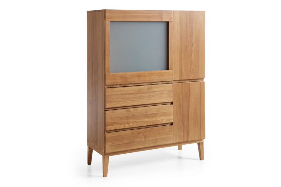 Komoda przeszklona I-9 z kolekcji Impresja, pod względem stylistyki nawiązuje do lat 50 i 60 ubiegłego wieku ma nowoczesny kształt, który idealnie dopełnia jej funkcjonalna forma. Prosty, bezuchwytowy front otwiera się wygodnie i bardziej bezpiecznie. Z kolei podział mebla na szafki, szuflady i mini witrynę powoduje, że w komodzie znajdziesz miejsce na wiele różnorodnych rzeczy. Ta ciekawa propozycja przyciąga wzrok rysunkiem struktury drewna, który zabezpieczono woskowaną warstwą. Komoda I-9 zaspokoi Twoje oczekiwania względem jakości, ponieważ jest ona wyprodukowana z solidnych materiałów - litego drewna jesionowego.