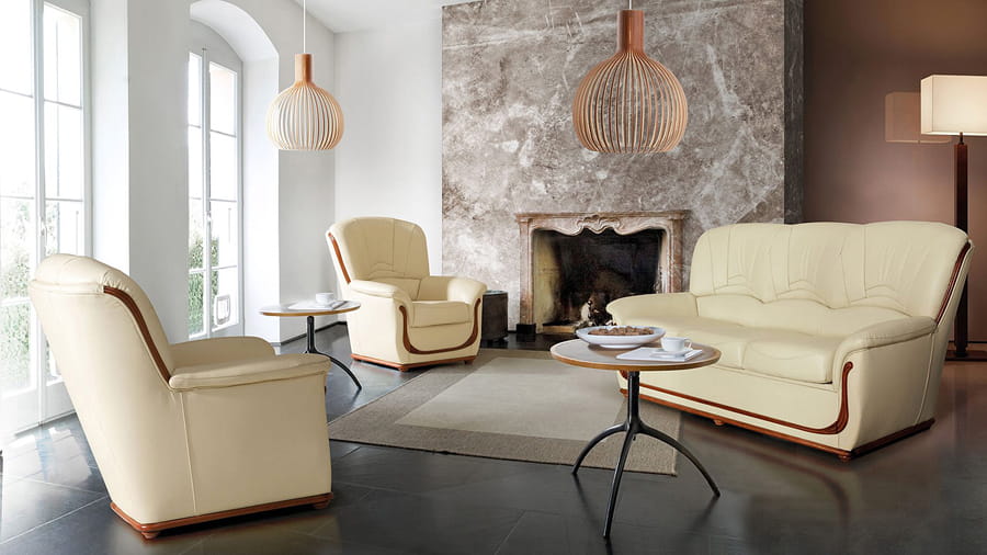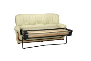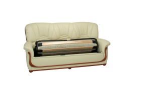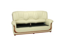 Zestaw wypoczynkowy, 3-osobowa sofa z dwoma fotelami Bergamo to meble, które doskonale podkreśli charakter wnętrza. Wyrafinowaną linię mebli tworzą zaokrąglone kształty, efektowne pikowania oparcia oraz drewniane wstawki dodające bogactwa i ciepła. Praktycznym udogodnieniem, jakie posiada mebel jest funkcja spania (rozkładanie typu: stelaż belgijski), dzięki której w salonie będą mogli przenocować goście. Wykonanie mebla na sprężynie falistej i bardzo wygodnej piance wysokoelastycznej są gwarancją wysokiego komfortu wypoczynku.