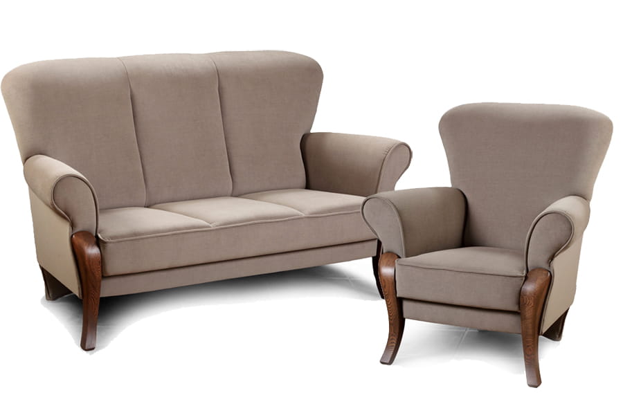 - stylowy zestaw wypoczynkowy: sofa z dwoma fotelami