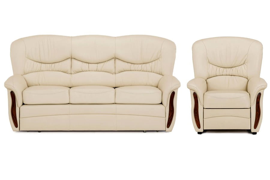 3-elementowy zestaw wypoczynków Genua Lux składa się z 3-osobowej sofy z funkcją spania oraz 2 foteli. Wszystkie bryły wyróżniają klasyczne kształty, które poprzez uzupełnienie efektownymi pikowaniami tapicerki oraz eleganckimi wstawkami z drewna zyskują nadzwyczaj elegancki i wyrafinowany wygląd. Wypełnienie mebli na sprężynach kieszeniowych oraz falistych i wysokoelastycznej piance HR tworzy niezwykle komfortowe siedziska. Sofa genua Lux posiada funkcję spania (typ rozkładania: wózek), dzięki czemu będzie niezastąpiona podczas dłuższej wizyty gości.