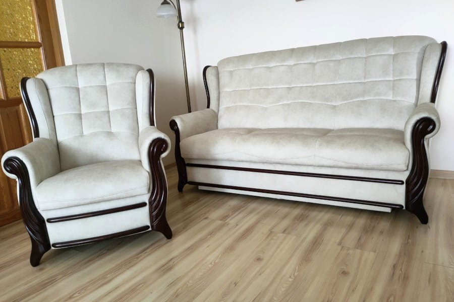 - zestaw wypoczynkowy składający się z rozkładanej sofy i dwóch foteli